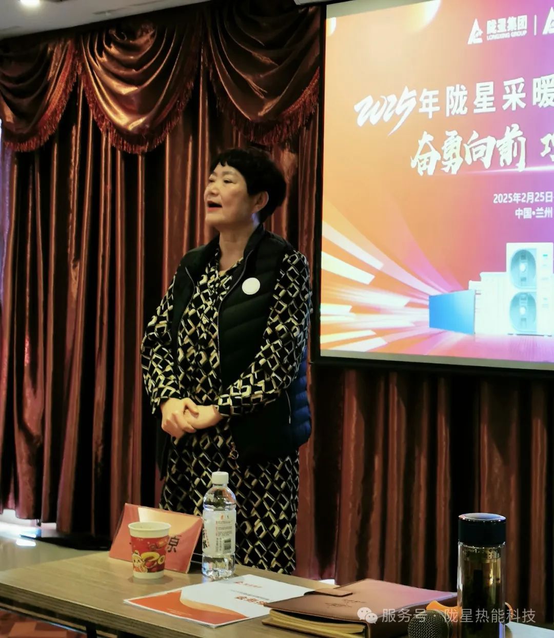 會(huì)議期間,隴星集團(tuán)董事長(zhǎng)吳愛(ài)華女士親臨會(huì)場(chǎng)對(duì)參會(huì)人員表示親切關(guān)懷,董事長(zhǎng)在會(huì)上語(yǔ)重心長(zhǎng)地說(shuō):“集團(tuán)是熱能科技公司的堅(jiān)強(qiáng)后盾,隴星總部園區(qū)與隴星制造園區(qū)緊密相連,2025年集團(tuán)會(huì)繼續(xù)大力支持熱能銷(xiāo)售,請(qǐng)每位干部、職工要與隴星企業(yè)一條心,每位銷(xiāo)售人員要擼起袖子加油干,把銷(xiāo)售做好,把市場(chǎng)做好,讓企業(yè)有更好的效益,讓個(gè)人有更好的收益!”