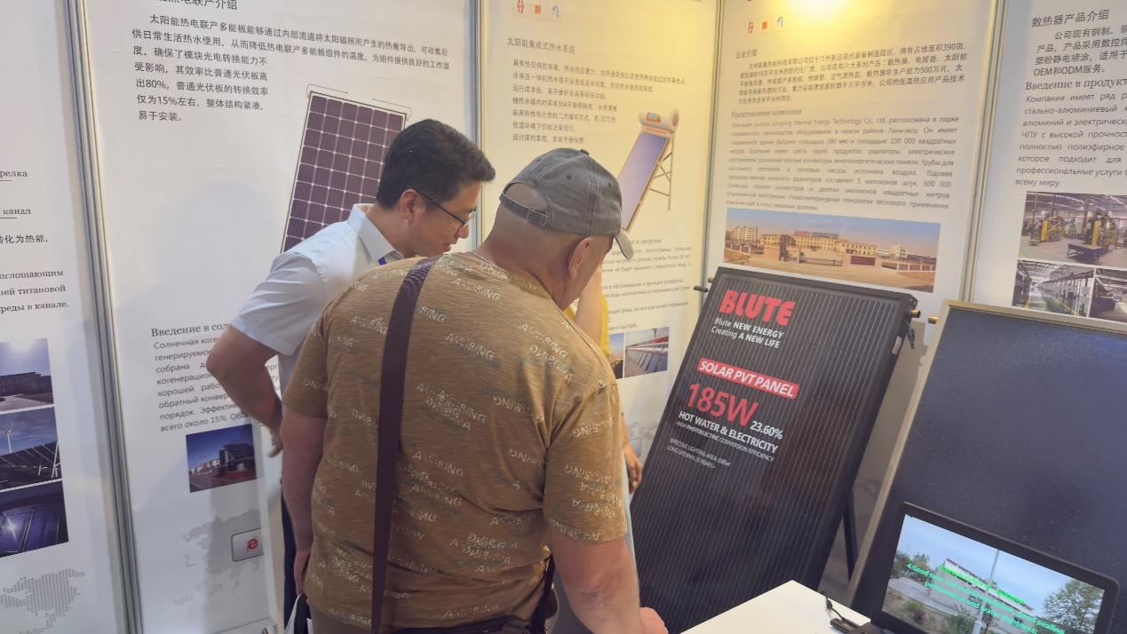 隴星“黑科技”產(chǎn)品——太陽能熱電聯(lián)產(chǎn)PVT光伏組件成為展會高人氣產(chǎn)品,吸引客戶關(guān)注。